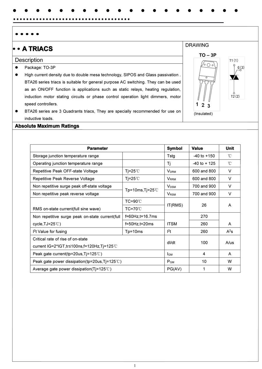 產(chǎn)品名稱:BTA26